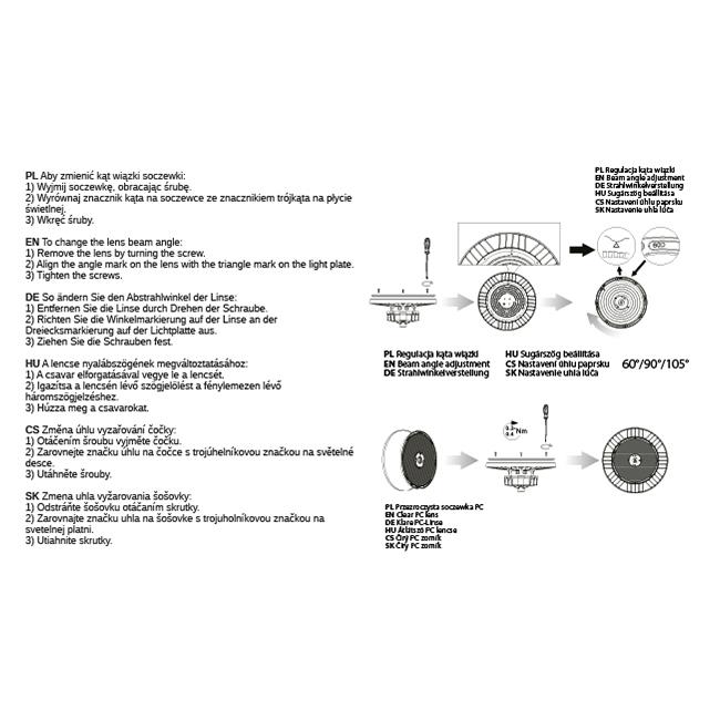 Kąt rozsyłu światła: 90° (regulacja 60°/90°/105°)