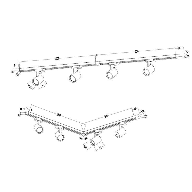 Zestaw 2m: 4 x reflektor, 2 x 1m szynoprzewód 1-F, łącznik prosty "I" + łącznik typu "L"